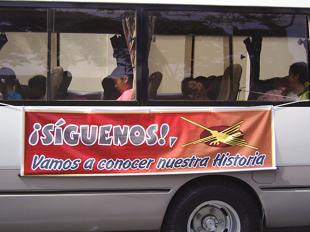 Bus que llevaba a los alumnos a recorrer zonas arqueológicas y museos dentro del proyecto Living History.